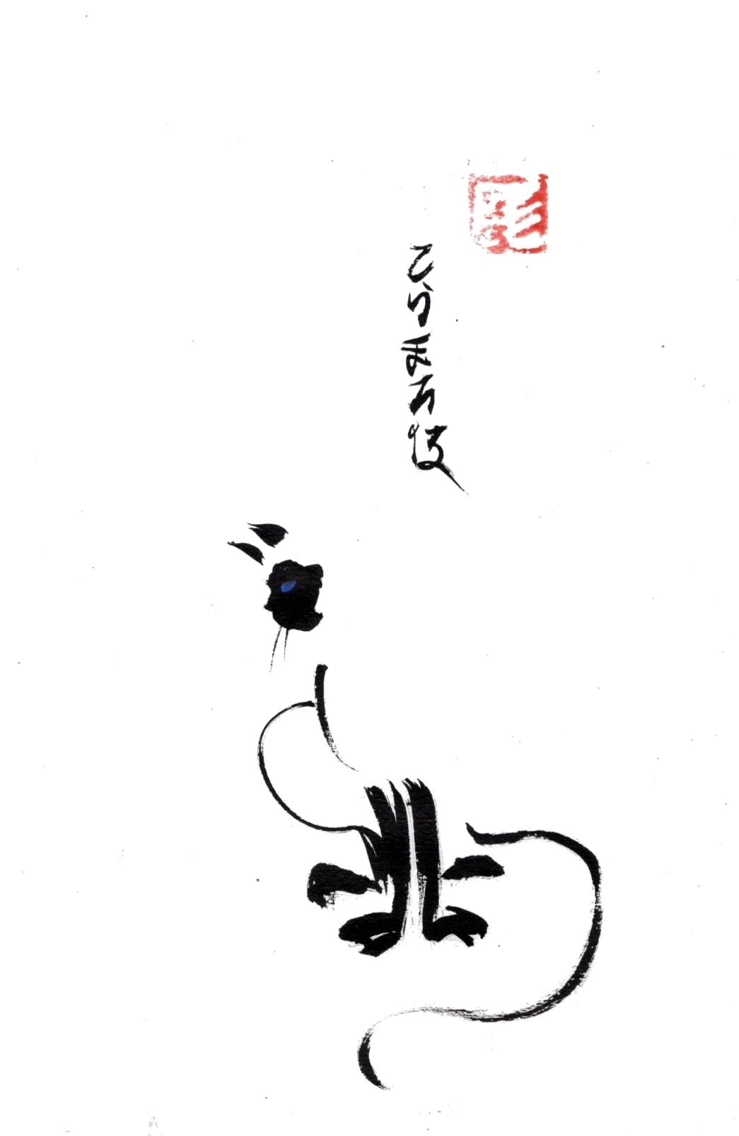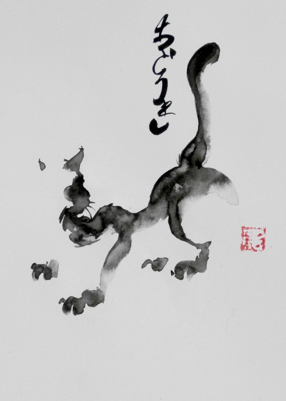 Dans la calligraphie japonaise rien n’est laissé au hasard : la ligne et le point sont de même importance, l’amorce du geste, la direction, la forme et la fin des lignes, l’équilibre entre la composition, les éléments et l’espace vide sont très chargés symboliquement, retranscriptions inépuisables de moments poétiques pris sur le vif.