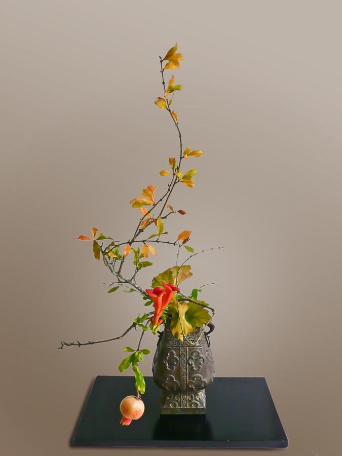 Ce style sophistiqué et très codifié, crée par des moines bouddhistes, utilisait des matériaux placés verticalement et de manière asymétrique dans un vase haut. Par ailleurs, le style rikka était une représentation miniature de l’univers ou d’un paysage.