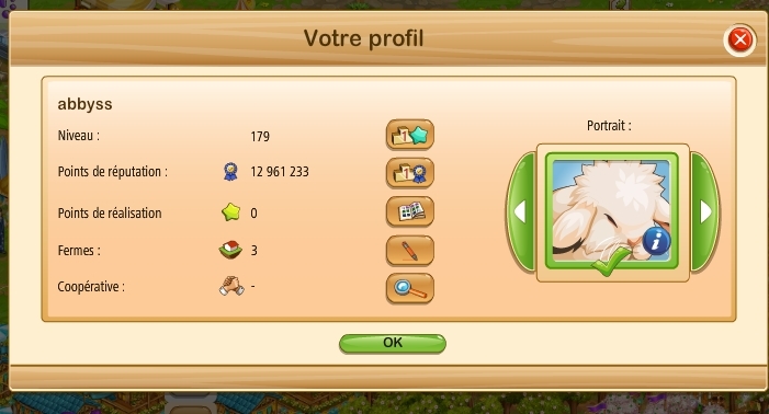 coucou mamie, je ne parle pas de la photo, il faut cliquer sur sa photo de profil ( du jeu) pour avoir ce panneau (son profil), rien avoir avec le ranch, bien que l'image je l'ai gagné avec celui ci Heu, encore une fois pas sûre d'avoir bien expliqué, hihi ze boulet dsl