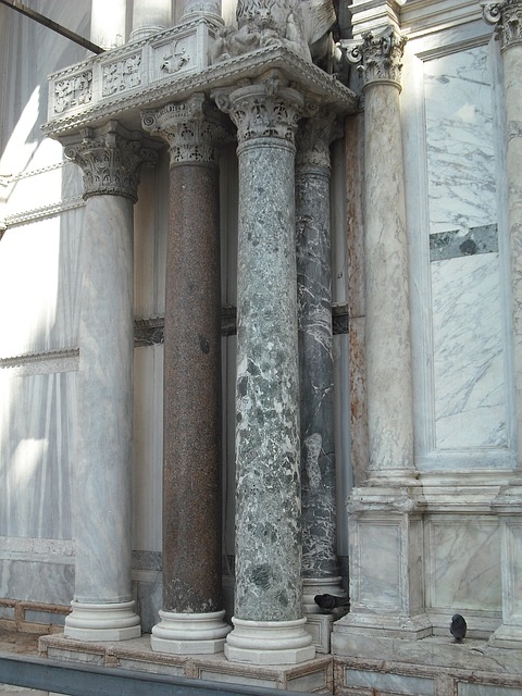 Fût d’une colonne en marbre cipolin, conservé à la Basilique de Maxence au Forum Romain, à Rome