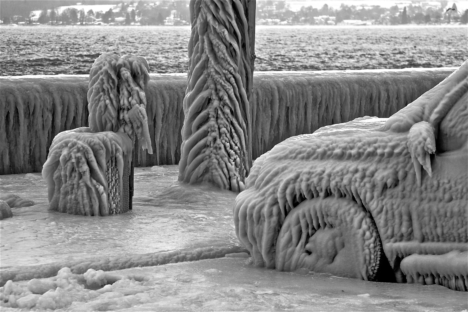 quais du Versoix sous une tempête d'hiver
