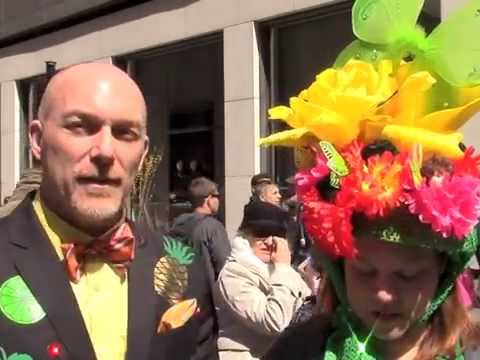 La parade de Pâques de la ville de New York, appelé Easter Parade se passe traditionnellement le long de la 5ème avenue entre la 49ème rue et la 57ème rue. Outre les habits de tout genre : tant des costumes d'après-guerre, que des vêtements de haute-couture on y voit des chapeaux rivalisant d'originalité. C’est le « Bonnet festival », un défilé de couvre-chefs excentriques aux couleurs de Pâques où la créativité s’exprime largement. Cette année, des centaines de spectateurs assistaient à ce rassemblement de dizaines de porteurs de chapeaux et de costumes fantaisistes.