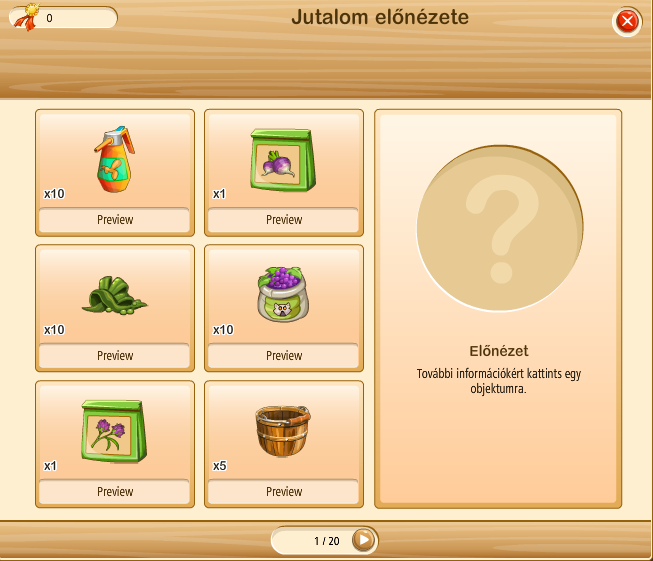Ha a lenti jutalom előnézete (medál) ikonra kattintasz láthatod miket nyerhetsz: