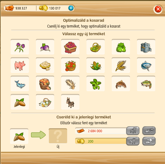 Előfordulhat, hogy az 5 termék közül valamelyiket cserélni szeretnénk. Minden termék cserélhető, akár többször is, viszont minél többször cserélünk, annál többe fog kerülni szövetkezetünknek. Csak a kihívás elindításáig cserélhetők a termékek, utána nem.