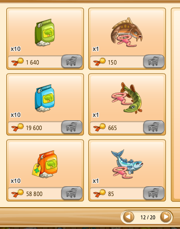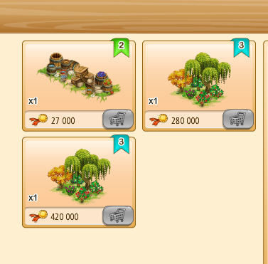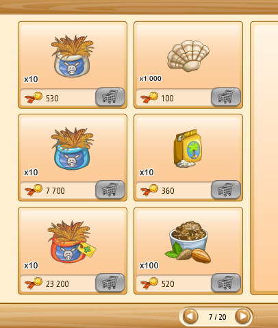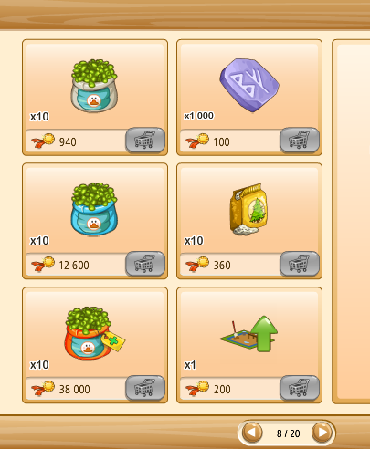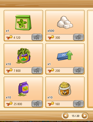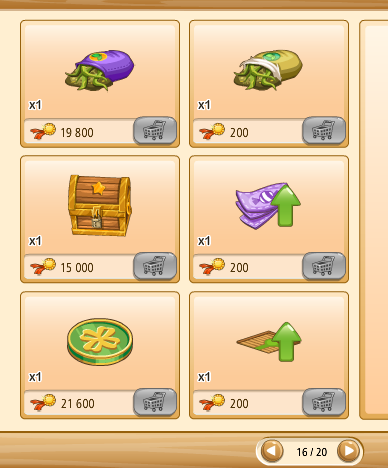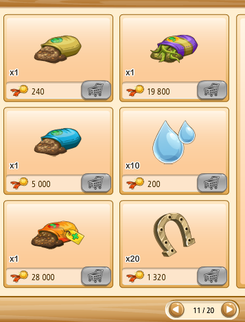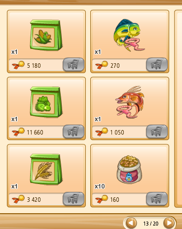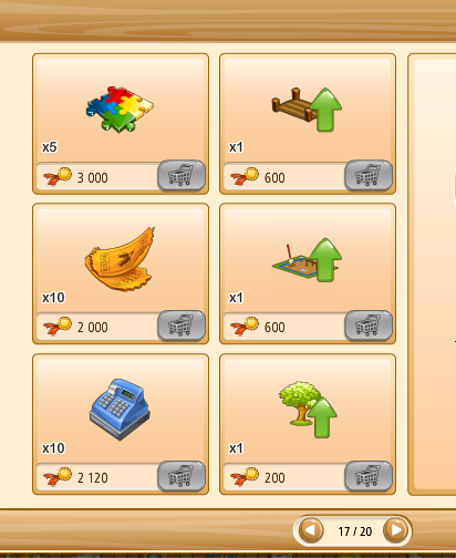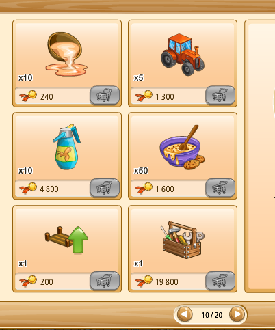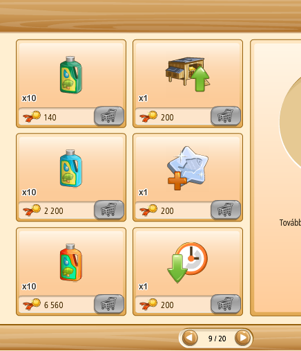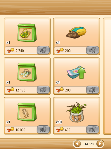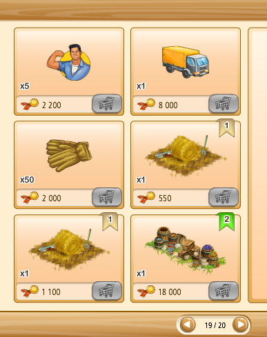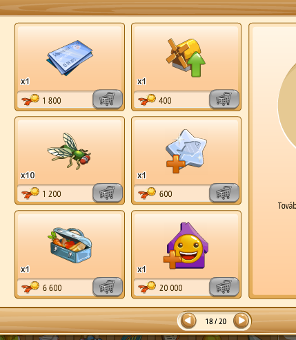 Megvehetjük az első kosarakat (bal oldalon levő kosár ikon) tekintve saját kasszánkból (faludollárért, vagy aranyért), ha a másik kettő (kezet mutató ikon) közül választunk, az a szövetkezeti kasszából kerül levonásra az összeg.