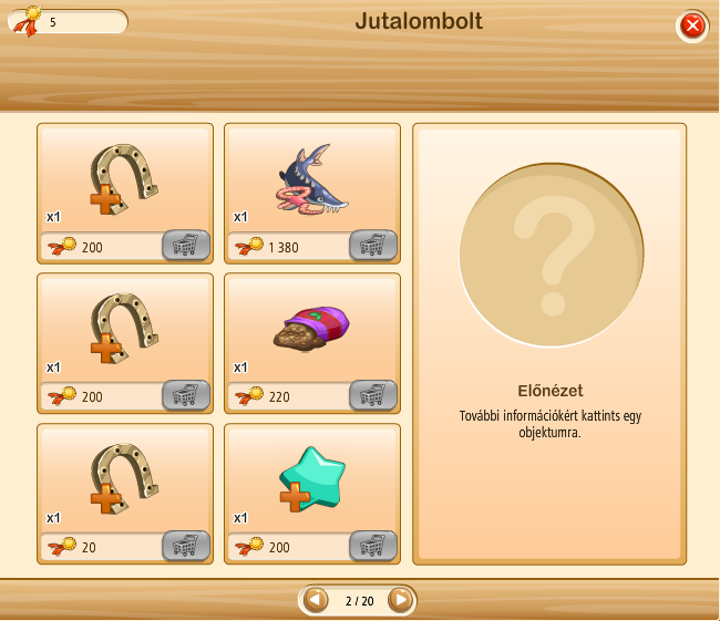 A jutalomboltban látható melyik termék mennyi medálba kerül. Az ablak bezárása után csak a következő kihívás végén nyithatjuk meg. 8 ablakból választhatunk.