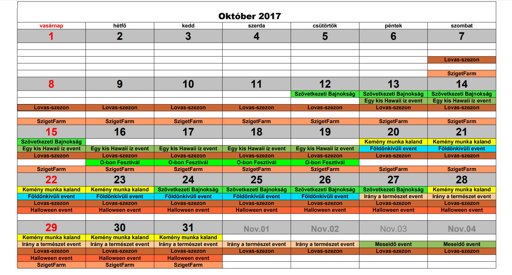 Esemény-Naptár Október