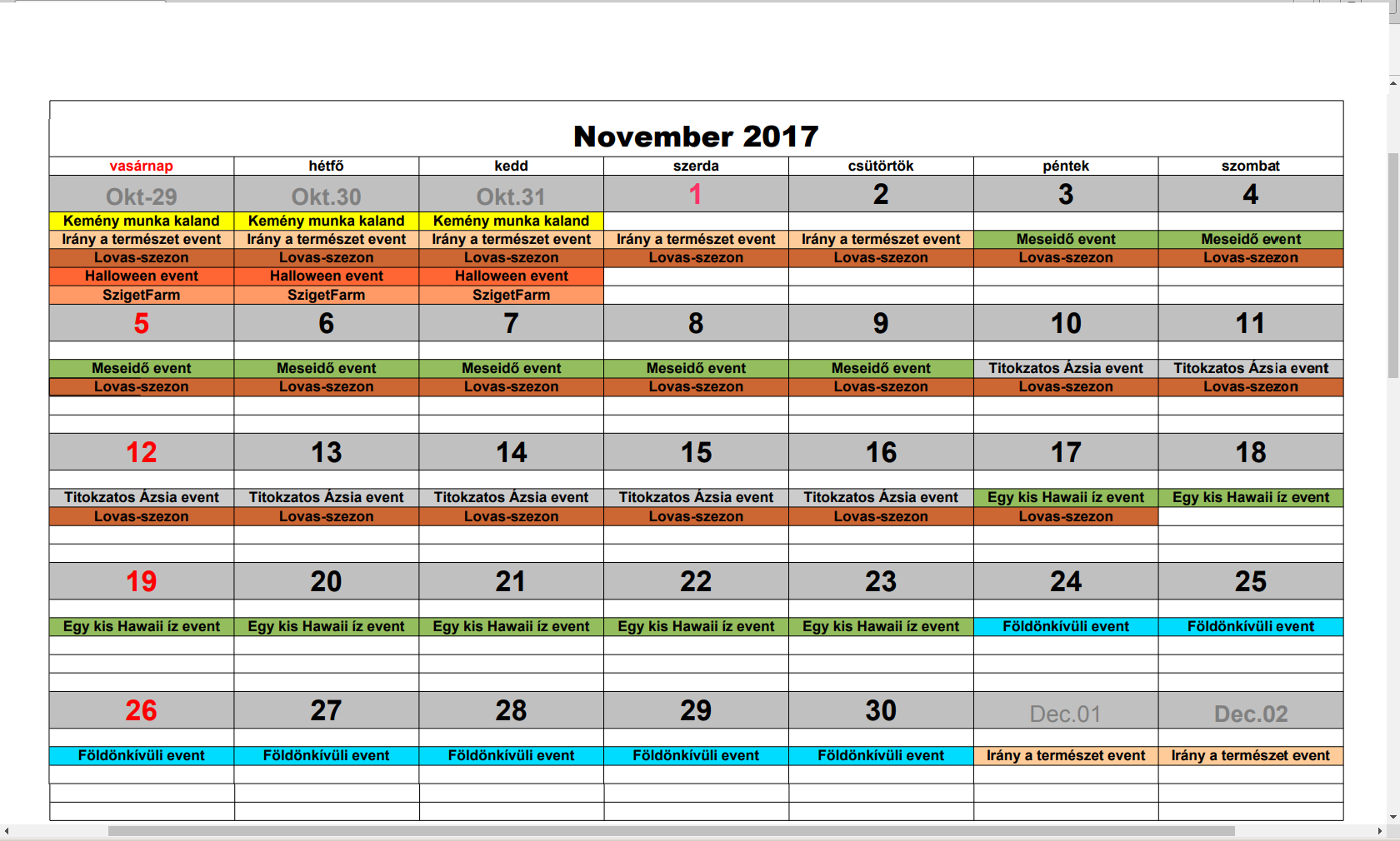 Esemény-Naptár November