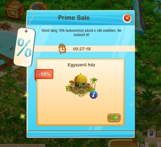 Feldobott nálam a szigeten egy akciót a rendszer, nem is értettem, hogy az egyszerű házra amit dollárért meg lehet venni, miért ír ki nekem 10 %-os akciót. Kipróbáltam, de semmilyen 10 %-ot nem vont le a vásárlás összegéből a rendszer. Több szövitársnál is megjelent az akciós panel, de sehol nem működött az akció