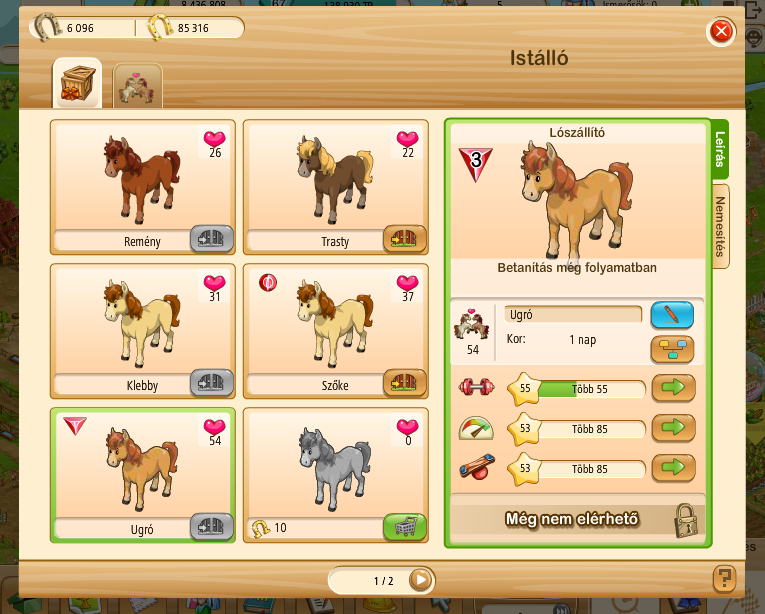 -Legyen egy 2 szintű nemesítési minőségű lovad!
