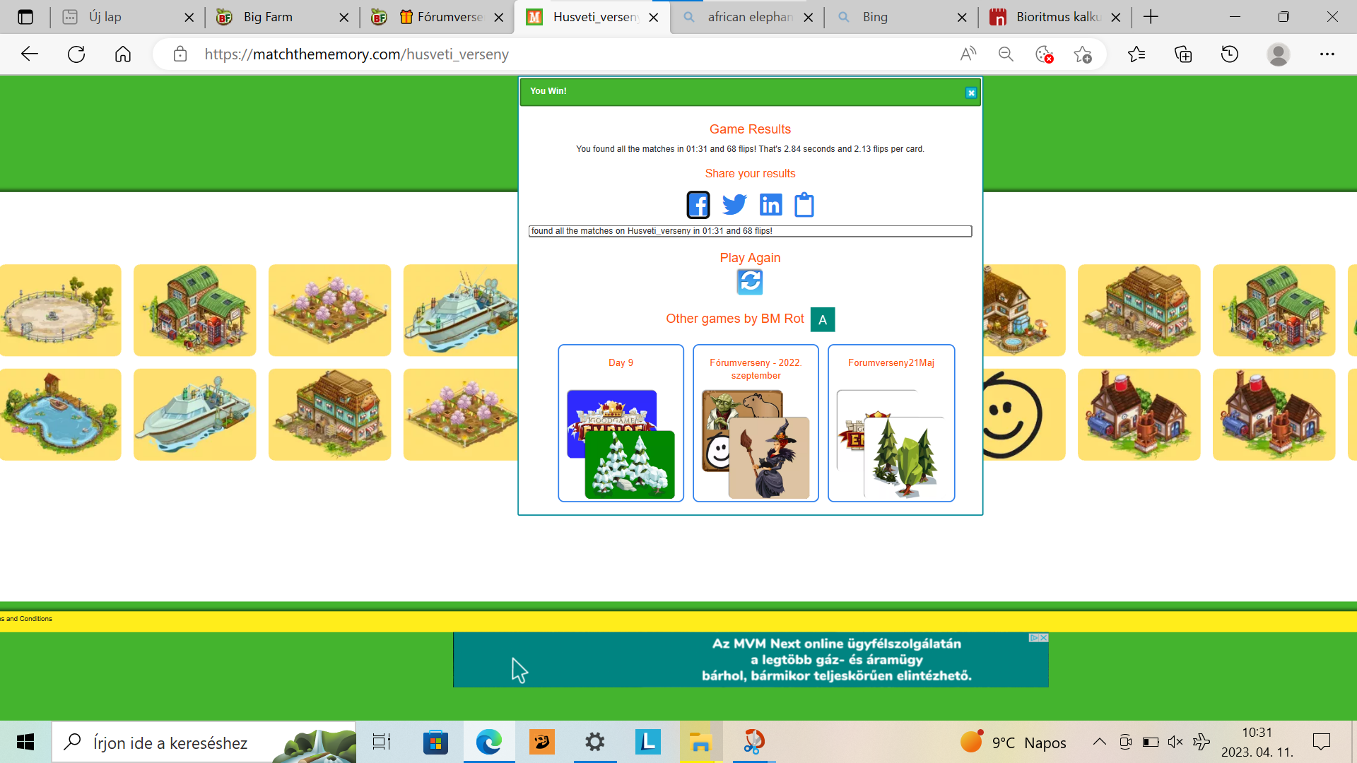 A memóriajáték az alábbi linken érhető el: https://matchthememory.com/husveti_verseny