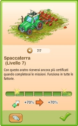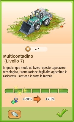 Oltre all'uso dell'oro per accellerare i raccolti dei campi, e di mangimi / humus super o premium, è possibile aumentare sia alcuni raccolti che i Punti Reputazione e i Certificati guadagnati dalle missioni utilizzando specifici macchinari.Il Multicontadino è un macchinario che dà un bonus permanente che varia dal +5% al +70% di Punti Reputazione ottenuti da ciascuna missione rispetto alla quantità che sarebbe stata elargita senza di esso.