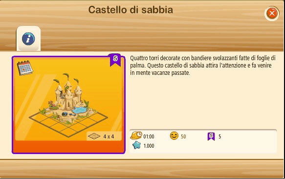 - Raccogli 5.000.000 di conchiglie ---> 4.500.000 conchiglie + Palazzo di Sabbia