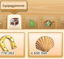 Per sapere quante conchiglie sono in nostro possesso ci basterà aprire l'inventario, e andare nella sezione "Equipaggiamento".