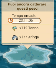 Ogni zona di pesca contiene una certa quantità e tipologia di pesce. Esse sono casuali, quindi potreste trovare pesci differenti ma anche zone che contengono lo stesso tipo di pesce.