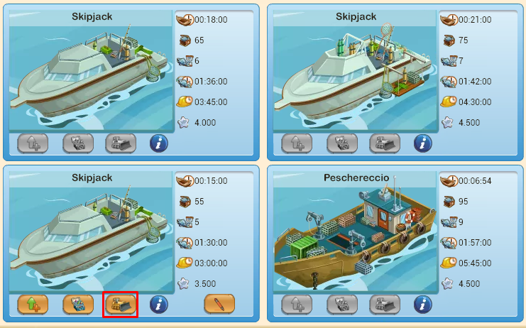 Ogni barca può essere demolita, quindi mano a mano che potrete accedere a barche migliori, potrete decidere di demolire le prime acquistate per avere una flotta di barche top.
