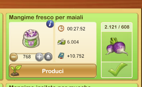 buongiorno a tutti, dopo questo aggiornamento succede una cosa strana nei miei mulini e silo.; quando vado a caricare il massimo ad esempio il mulino nella principale mi dice 27.52 min durata, appena messo in produzione vedo 11.24 min, come deve essere , questo è un esempio con ravanelli, per il mangime mucche mi sono trovata con 1 giorno di tempo di attesa poi messo in produzione scrive magari 16 ore ,stessa cosa nella gaudente , quando carico massimo con mangimi anatre, vedo 44 ore , messo in produzione compare 15 ore come deve essere. Io un pò ho la memoria dei tempi però avere questi dati cosi strambi non si riesce gestire bene se magari lo voglio mettere, il mulino della gaudente, solo per poche ore. posso allegare solo la foto del mulino principale, l'altro e il silo sono in produzione. Ora ho visto che anche il costo è diverso da quando entro nel menù del mulino; come si vede dalla foto il costo sarebbe di 6004 dollari, invece ha preso solo 2528 dollari, come deve essere , tutto si presenta doppiato, sia i tempi che i costi di produzione. Benvenuto il terzo magazzino però alle farm di un certo liv è un pò difficile trovarli posto, sarebbe più facile se quei 2 pezzi di terreno che per ampliarli chiedono le ricerche e ampliamenti di una marea di edifici, che alcuni manco ce li ho nelle farm, si diminuisse un pò la richiesta, tipo se io voglio ampliare i pezzi del terreno dalla principale te non mi puoi chiedere di avere l'asino e la capra al massimo, chiedi per i terreni della gaudente questi ampliamenti con le relative ricerche. Spero in un futuro più facile nella gestione delle farm. Il cambiamento dei nick sono d'accordo per chi come me aveva preso la farm di mia figlia all'inizio del gioco e si trova con un nome che non la rappresenta, o un nick che potrebbe creare dei commenti buffi però cambiare per nascondersi dopo anni con altro nick lo trovo inopportuno , mica siamo scemi, sappiamo chi sta dietro il cambiamento