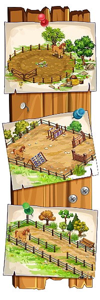 Ogni campo di allenamento può essere portato fino al livello 10. Gli ampliamenti si pagano in ferri di cavallo da gara.