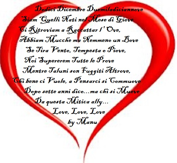 Auguri alle Terre Rosse mitica ally della quale faccio parte da oltre un anno lo so non è molto,ma con voi sto proprio bene molti sono rimasti alcuni sono passati come meteore ,ma noi ci siamo e andiamo avanti e come dice la Manu e chi si muove da qui?