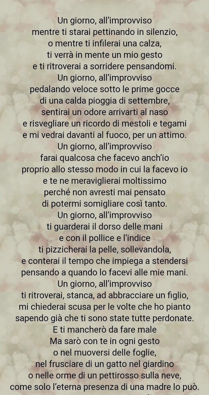 poi hai detto, stringendoti il mio bambino al seno: