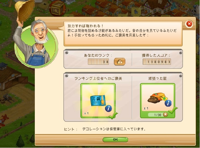 そうそう、先ほど数時間ぶりにログインしたら、ヴァイキングファームのご褒美をもらいました。なぜもらったか???です。