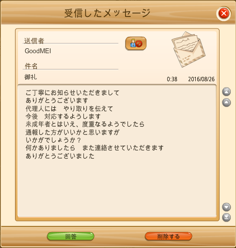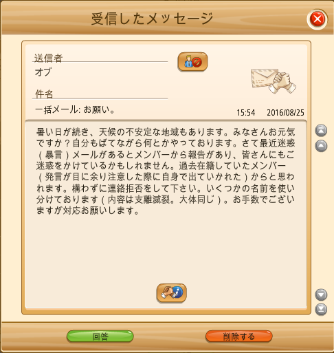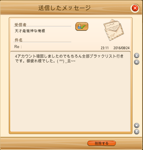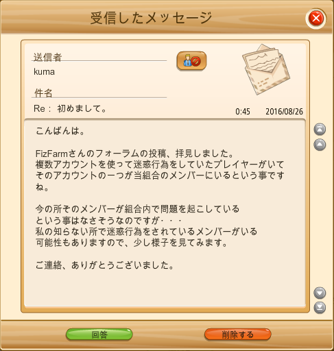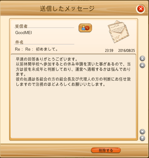 私の組合を荒らしたプレイヤーは、昨日運営に通報しました。