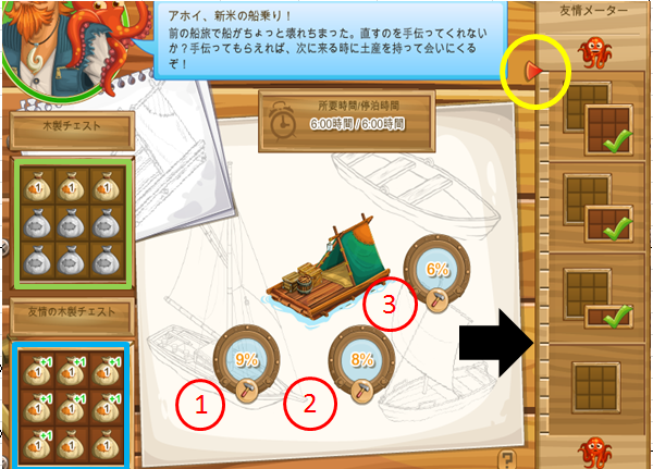 ※個人寄付をして、友情メーターが一番上(図2 黄色丸)まで行くと、次回船が来た時に2つ目のお土産を