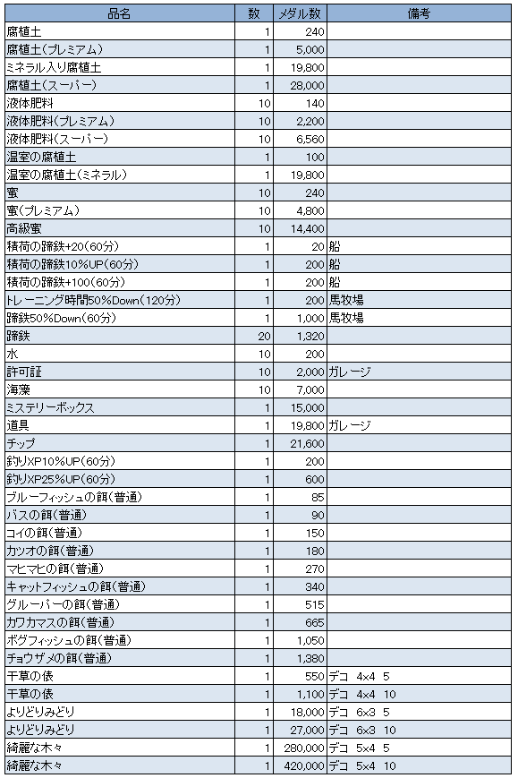 里バトルでGETできるメダル報酬の一覧を上げておきます~(*^ ^*)