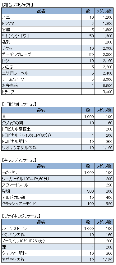よりどりみどり② 27,000メダル 満足度+10 里の満足度+10