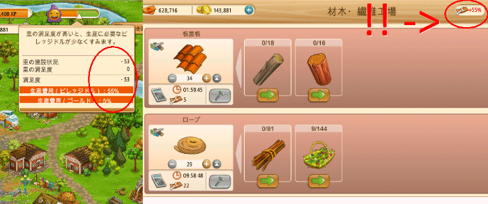 組合の里施設をUPするのと比例して満足度も下がる仕様なのかもしれません。