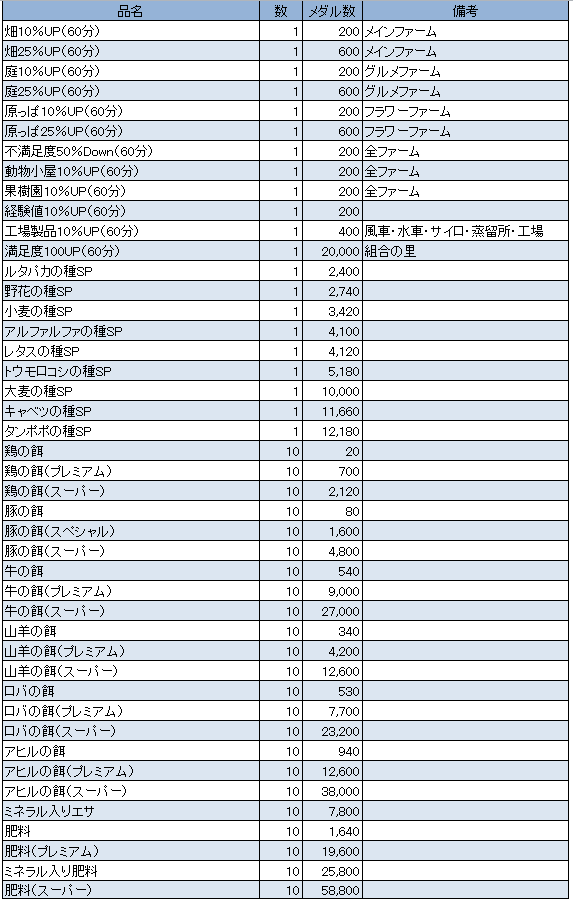 よりどりみどり① 18,000メダル 満足度+15 里の満足度+5