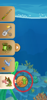 赤丸の部分をクリックすると、エサを撒くことができ、釣り場にそのエサの魚が新たに現れます。