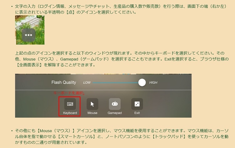 ビッグファームはPC用のウェブブラウザ用に開発されているブラウザゲームのため、モバイル端末用のブラウザでは動作保証がされておりません。そのため、ウェブブラウザの用にスムーズに動作がしない場合や、ゲームプレイに支障が発生する可能性があることご了承ください。