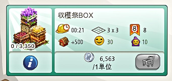 収穫ボックスかぁ…便利そうですよねー私の場合、まだ800ずつしか倉庫に入らないんですよw