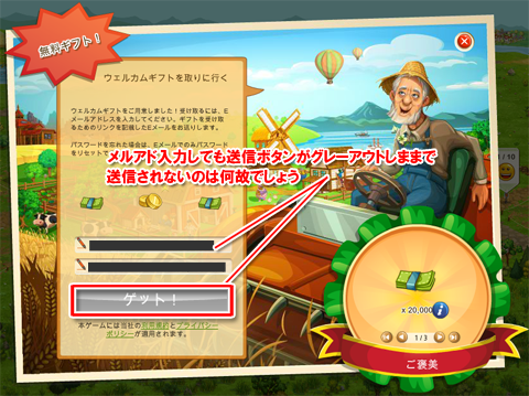 リセットされた後再登録して「ウェルカムギフトを取りに行く」をクリックしても