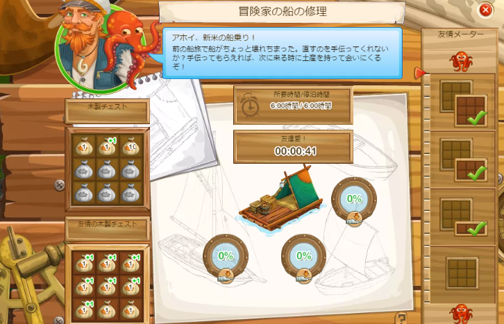 船もレベル1から上げないでそのままです。寄付は済んでいるので上げることは出来るのですが、