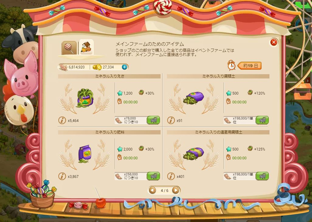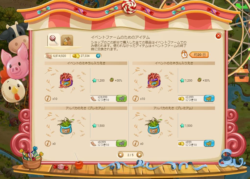 アイテムは、そのイベントF期間にのみ イベントF画面でのみ使用可能なエサや藻や生産品、売却か使いきるかしないと終了時にルーンストーンに自動的に換金されるので持越しは不可能