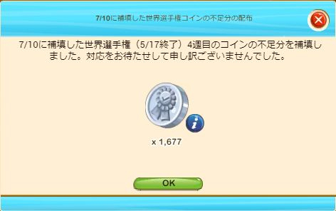 7月10日に、補填としてコインの配布がありましたが、その数は予想できる第4週分のおよそ10分の1であると思われました