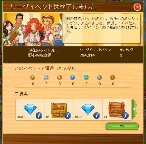 ファーマーズリーグ、リーグイベ終了のお知らせでのメダルが足りない (2回連続中)