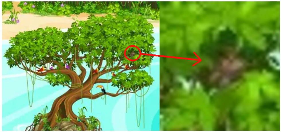 ・・・新たなミステリーの発見? 擬態してるモンチッチ(猿/緑の体毛に茶色の部分は顔と手)かも?