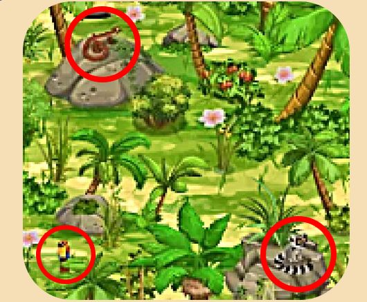 トロピカルファームの一例。左上は蛇?、右下はワオキツネザル、左下はハテ何でしょうか??