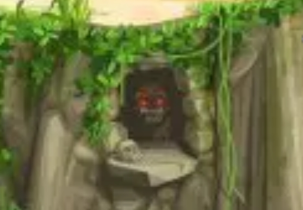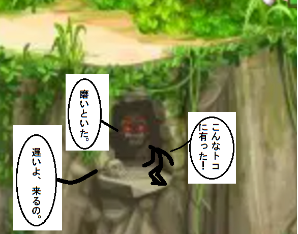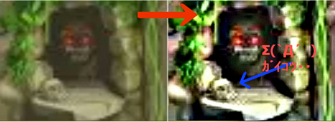 怪物もさることながら、洞窟の入り口に転がっているのは髑髏(シャレコウベ)ではないでしょうか?