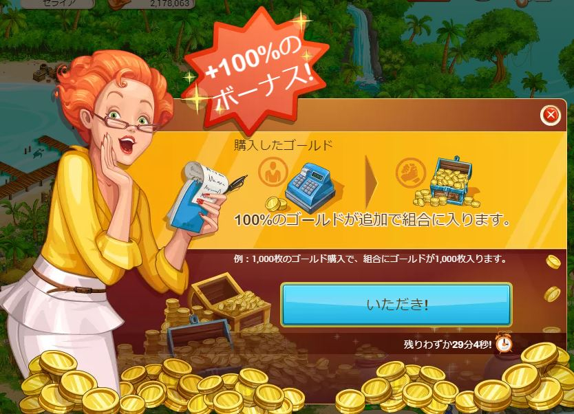 さて、ゲーム内広告にも2種類ありまして、「ゲームに関する案内・周知」と「課金を促す広告」で、邪魔なのは後者です。最近はオファーなどはポップアップが少なくなりましたが、最も邪魔なのはこれかも知れません。