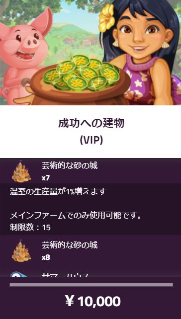 をもっと収穫できるの。これで夏のシーズンにたくさんの南国フルーツを収穫してね!特別なデコレーションは、メインファームにのみ最大15個設置できるからね。
