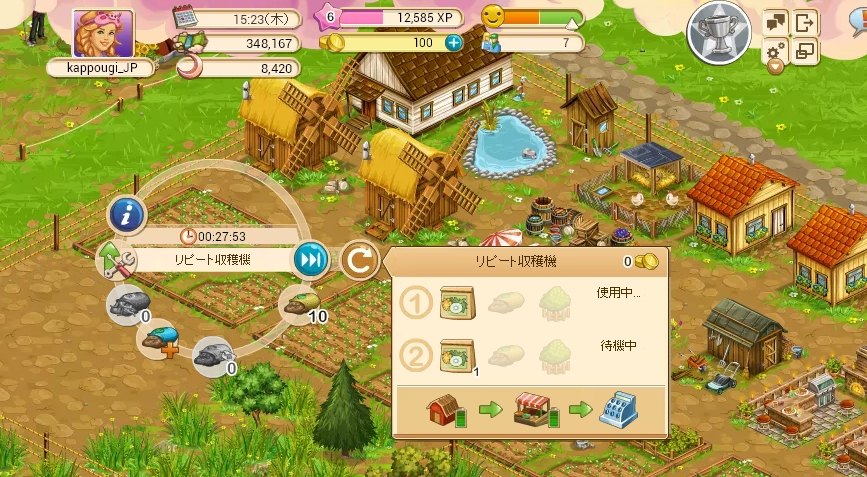 リピート収穫機って、生産の操作が省けるだけで、生産費用はリピート回数分だけ自動支出されますけど。。。