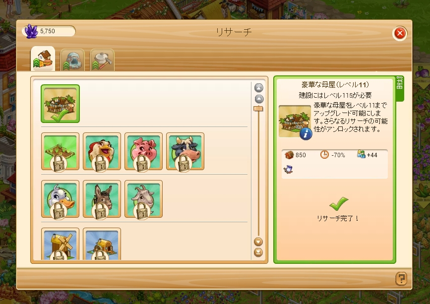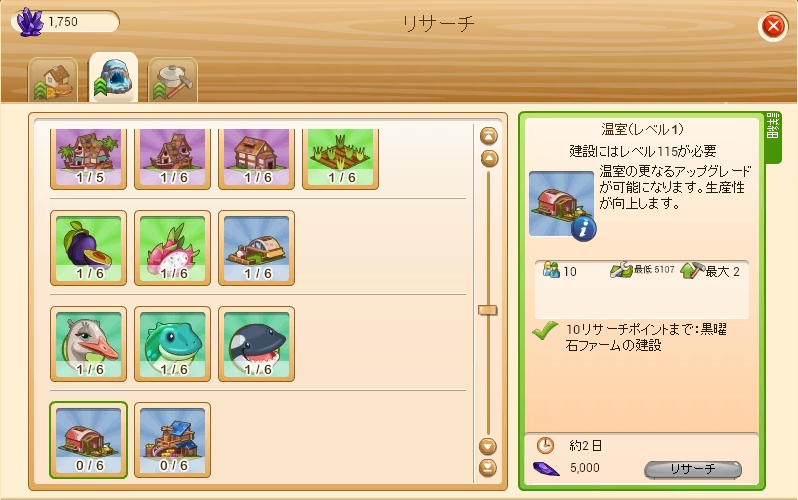 下図のは最も高額なものですけど、パビリオンの『畑の生産時間短縮』が珍しいですよね。
