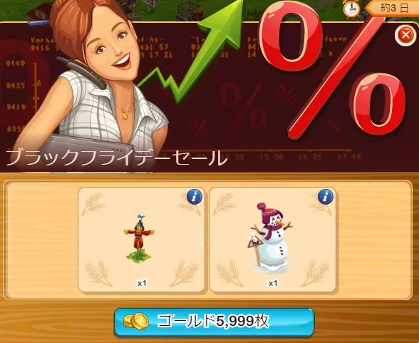 ブラックフライデーセール(下図)のデコ『賢いかかし』と『雪だるま』、表示無いけど50%オフだそうです。
