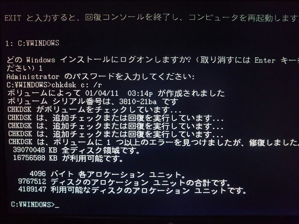 チェックディスクかけてみたらwindowsファイルだいぶやられてたw