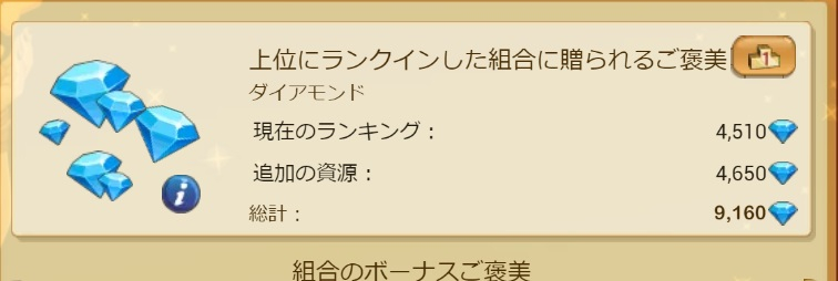 トータルで1万稼げればいいや。ランキングでは稼げないから、コツコツクエストこなして6000くらい稼いで、残りを組合プロジェクトで。