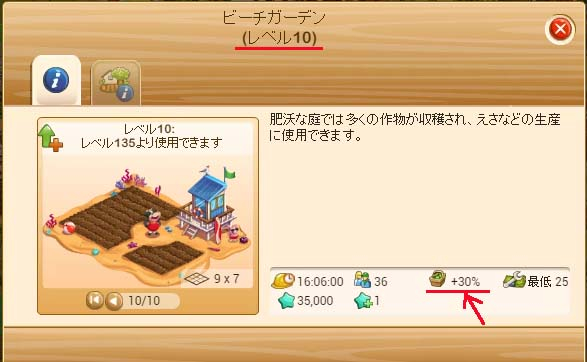 とレベルが上がると収穫量アップの割合も増えていきました。